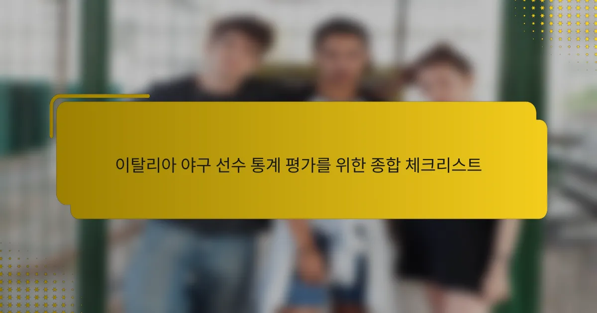 이탈리아 야구 선수를 효과적으로 평가하기 위해서는 타격, 수비, 투구에서 그들의 성과를 반영하는 주요 통계에 집중해야 합니다. 이러한 지표는 선수의 팀에 대한 전반적인 기여도를 파악하는 데 도움을 주며, 스카우팅 및 팀 선택을 위한 정보에 기반한 결정을 내리는 데 유용합니다.